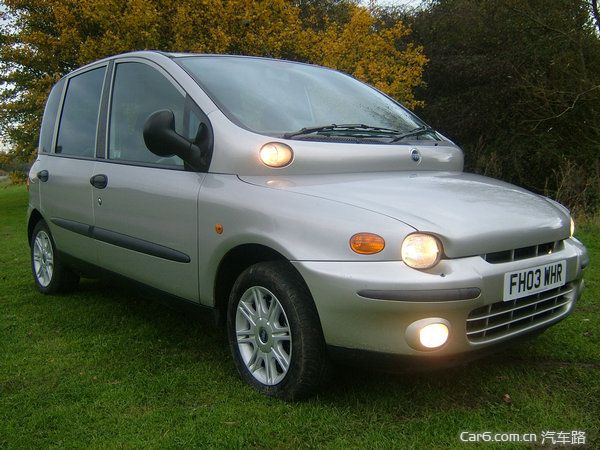 八:菲亚特Multipla,外形极为古怪,汽车挡风玻璃稍显松弛,巨大的玻璃区和突出的尾部使其视线很受影响。
