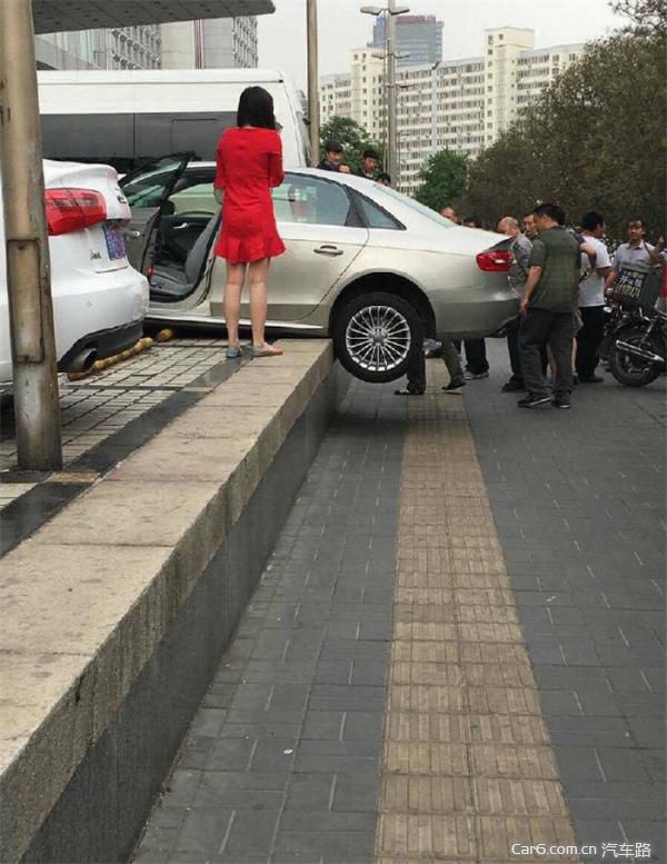 这位女施主,那马路牙子和你无冤无仇,你折腾她干嘛?人家只是想安静的做一个马路牙子,直接把车骑人家脸上了……没准女施主只是想从马路牙子那直接下去呢!可惜修的太高了,下不去!